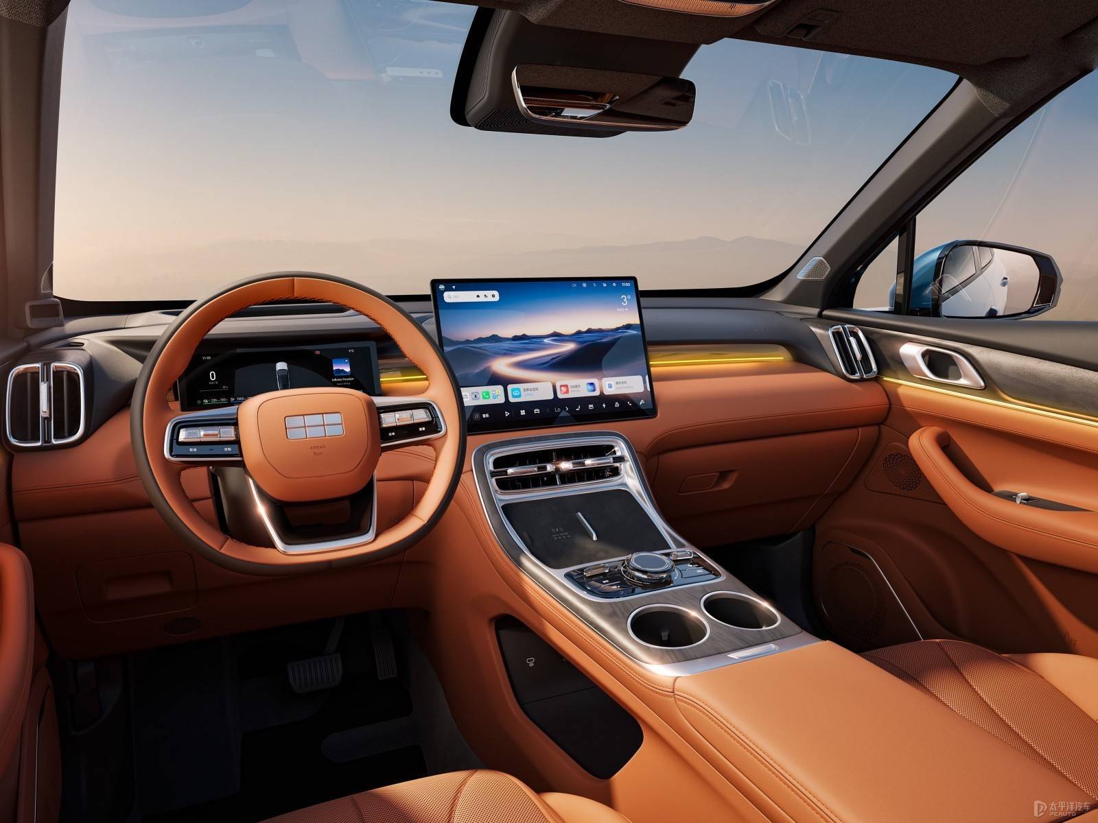 内饰方面,银河M7采用液晶仪表屏+悬浮式中控屏的搭配,采用怀挡换挡和三辐式多功能方向盘。新车还通过压缩仪表台厚度和优化A柱角度,为驾驶者提供通透的视野。
