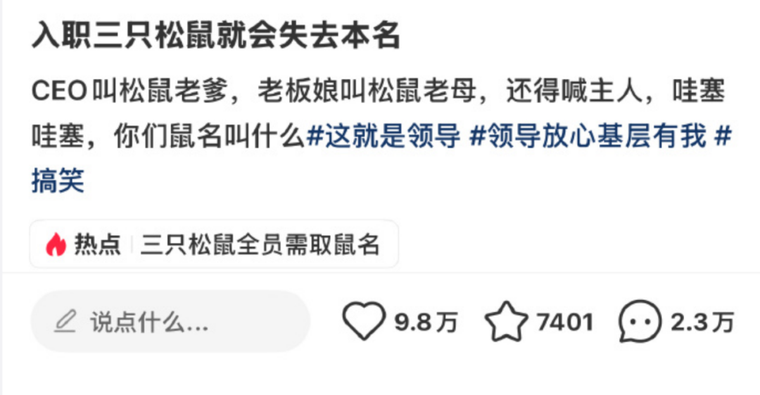 近期,网络热传三只松鼠公司员工入职时候需要自己创作“鼠名”。