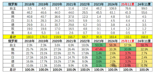 数据显示,2025年前11个月,中国对俄出口汽车51.3万辆,而自主品牌在俄本地销量达76.6万辆,本地销量已达到出口量的149%,标志着库存去化取得显著成效。这一转变得益于中国车企加速推进本地化策略,包括深化KD组装模式、建设区域生产基地及配件中心仓,核心零部件本地化率已超60%,有效提升供应链韧性并缩短交付周期。
